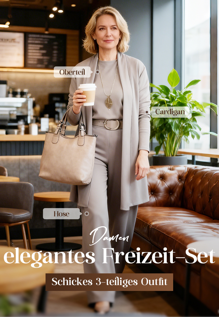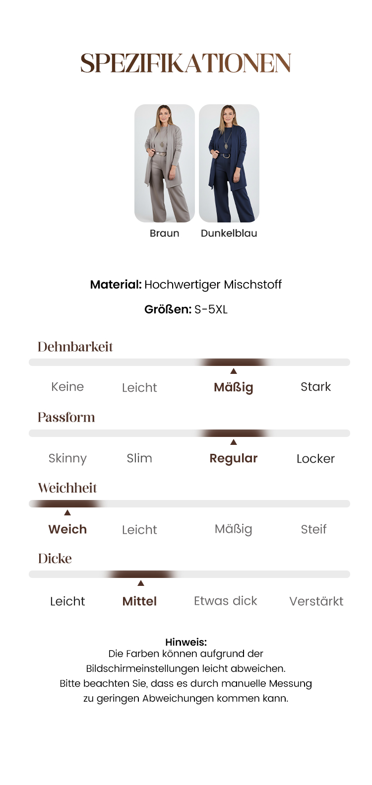 Elegantes 3-teiliges Set: Langer Cardigan, Oberteil und Hose