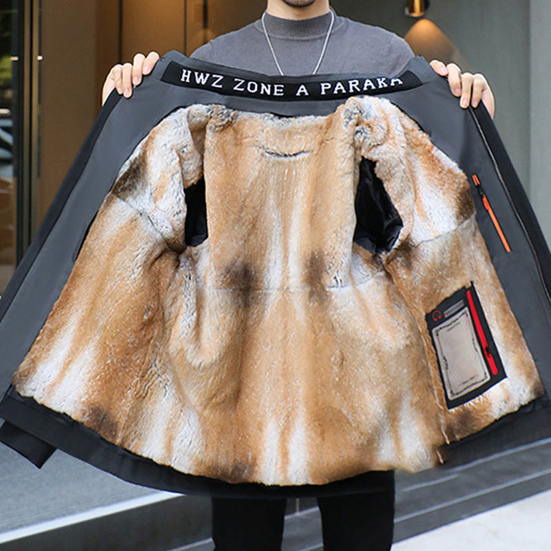 🔥Herren Wintermantel mit Kapuze und warmem Kunstpelz-Futter