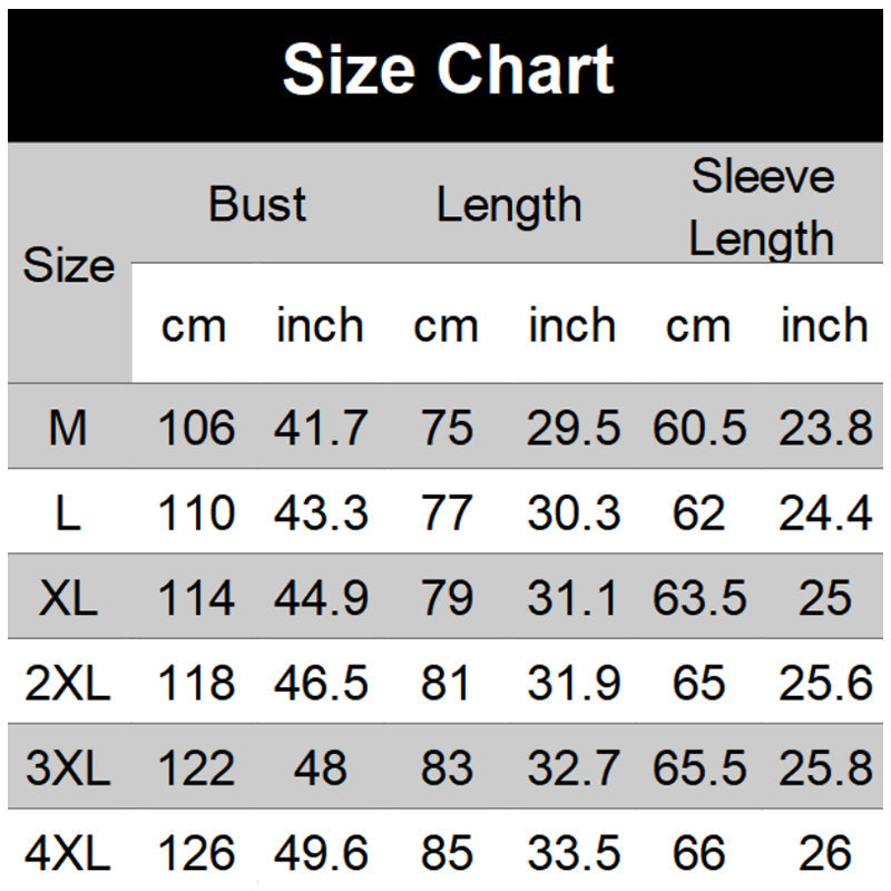 Größen: M, L, XL, 2XL, 3XL, 4XL