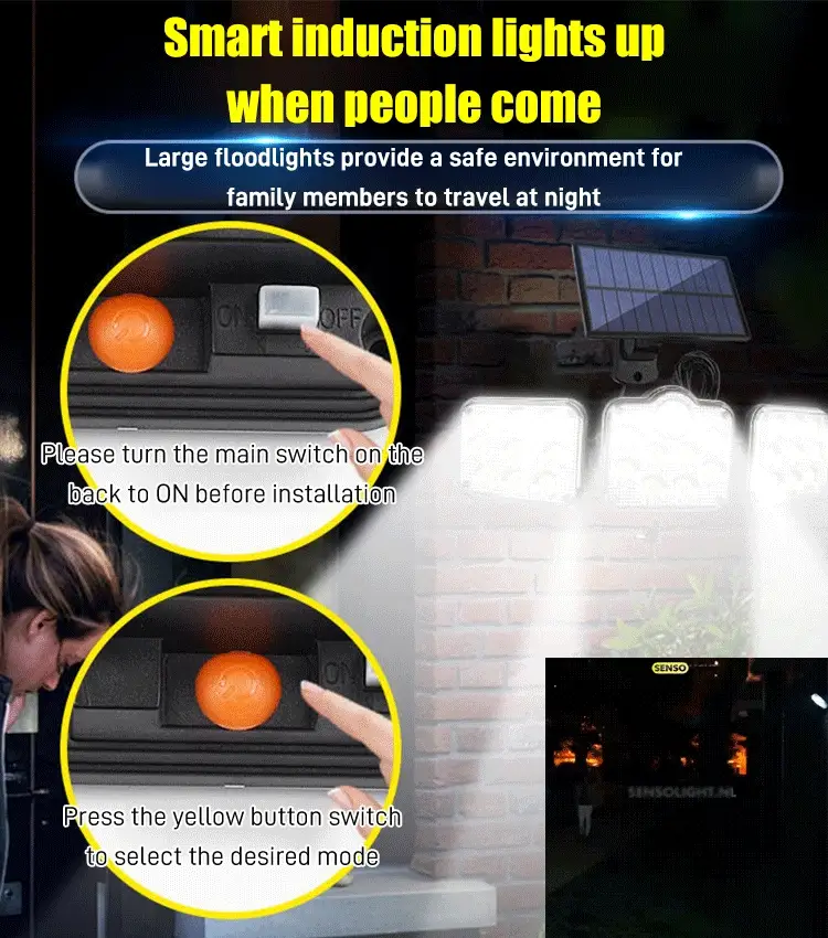 Solar-Wandleuchte mit drei Köpfen