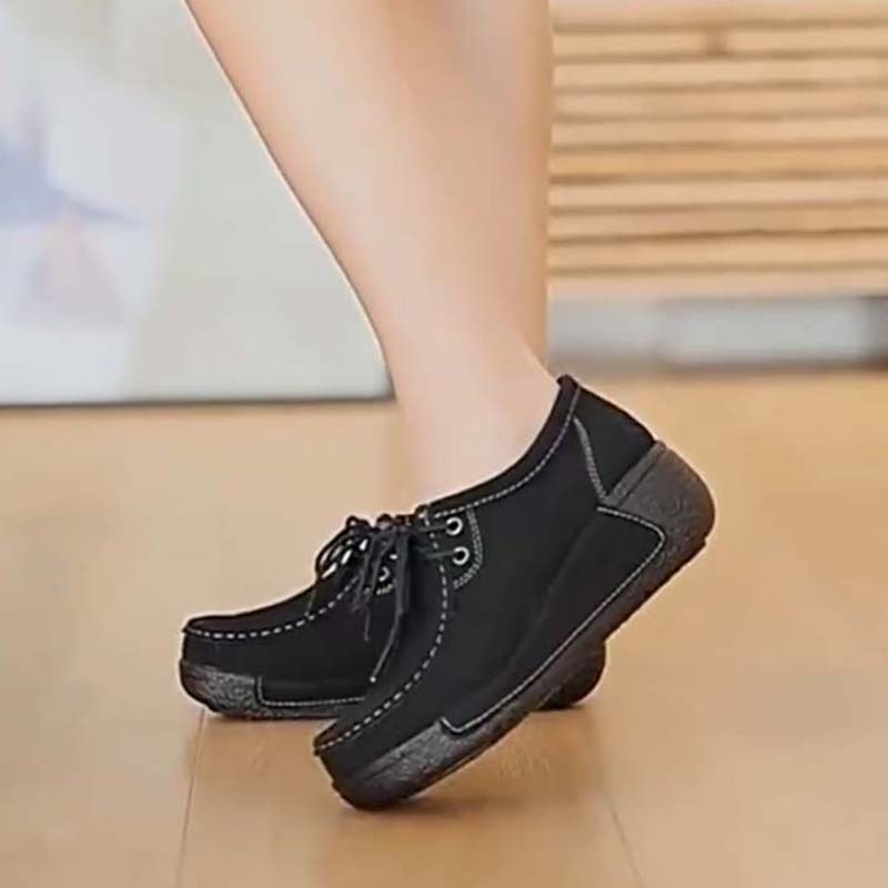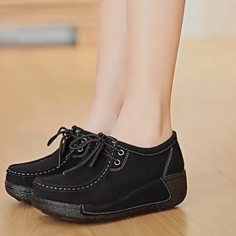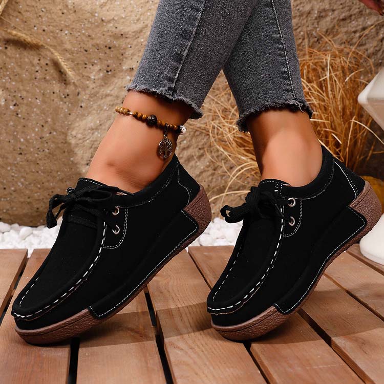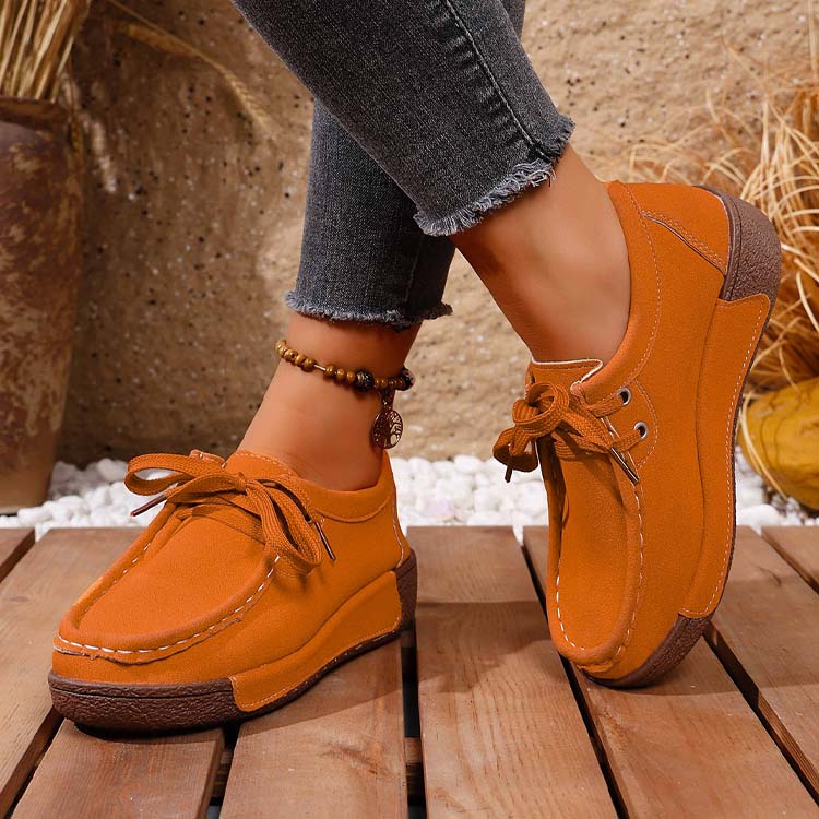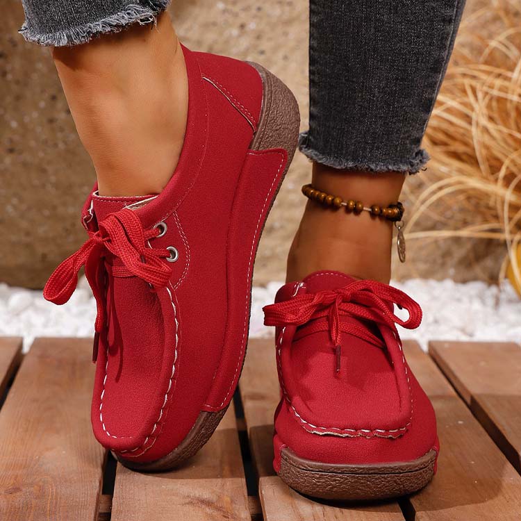 Lässige Damen-Mokassins mit erhöhter Plateausohle und Schnürung